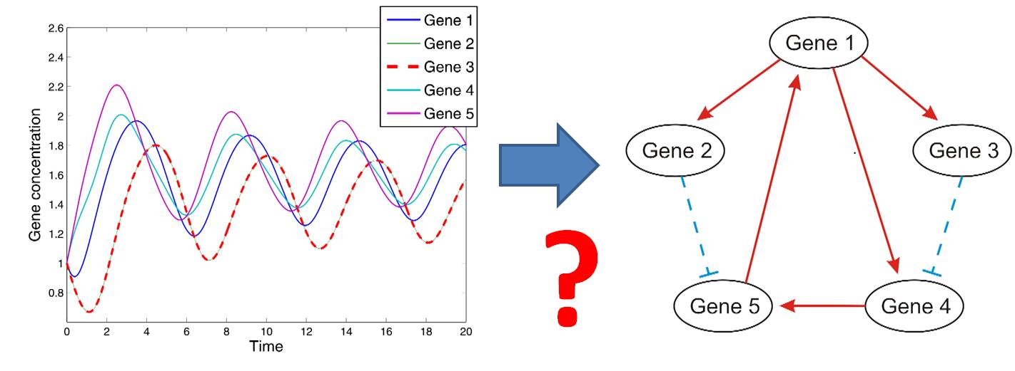 Network inference deals with the problem of reconstructing causal molecular networks e.g. of disease from observations of the networks behavior. Hence, based on mere observational data, for example simply over time, or after certain interventions, the question is to infer how this systems functions internally. This is a complicated inverse problem, that has attracted much attention in engineering ("system identification"), and has tremendous potential for applications in Biology. We work at the forefront of the development of new methods for network reconstrucion in biological applications, using, for example, Bayesian models or nonlinear dynamic systems.